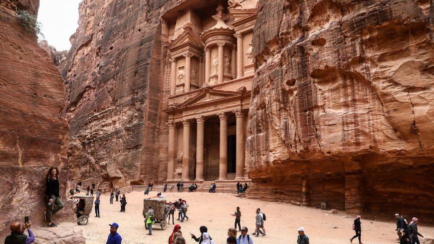 Pétra est un site archéologique célèbre, situé dans le désert sud-ouest jordanien. Remontant à environ 300 av. J.C., elle fut la capitale du royaume nabatéen. Accessible par le Sîq, un canyon étroit, le site renferme tombeaux et temples taillés dans les falaises de grès rose d’où il tient son surnom de « ville rose ». La Khazneh, haute de 45 mètres, est sans doute l’édifice le plus célèbre de Pétra. Il s’agit d’un temple à la façade ornée de style grec et connu sous l’autre nom de « Trésor ».